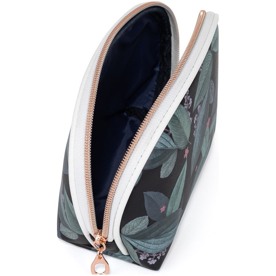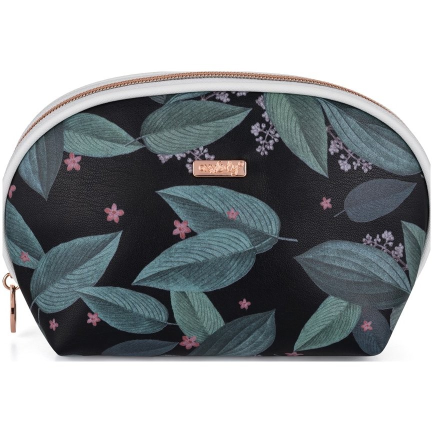 Cestovná okrúhla kozmetická taška v tmavom prevedení. Vhodná na uskladnenie toaletných a kozmetických potrieb menšej veľkosti.