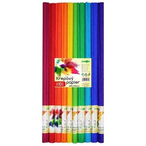 Klasický krepový papier o rozmere 50 x 200 cm. 10 farieb v sade.