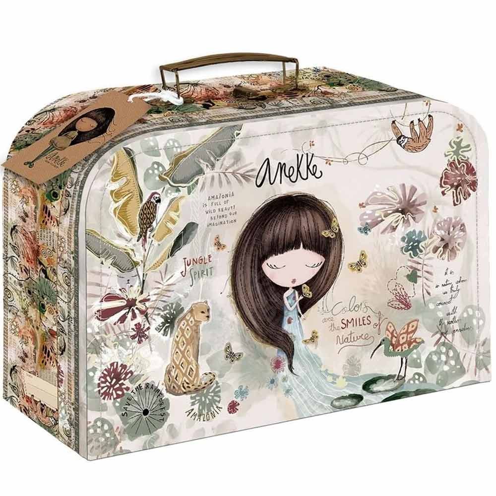 Kufrík na výtvarku Anekke, veľkosti 35x25cm s motívom známeho dievčatka Anekke z dielne španielskej dizajnérky. Kufrík je vyrobený z kvalitného pevného kartónu s vnútornou potlačou a kovovým uzatváraním s rukoväťou.