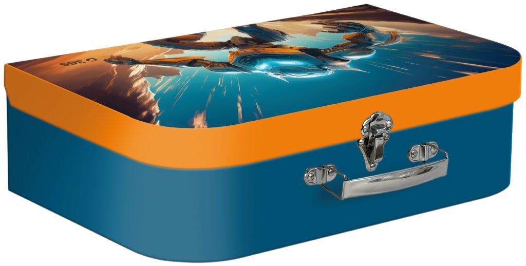 Detský kufríkznačky Stil Sci-fi je vhodný pre chlapcov na uloženie výtvarných potrieb v škole, alebo aj ďalších pomôcok či hračiek doma.Kufrík do školy je veľmi ľahký, vyrobený z kvalitnej lepenky. Vďaka povrchovej úprave je možné prípadnú nečistotu odstrániť vlhkou handričkou. Vonkajšia strana je pokrytá potlačeným papierom s detskými motívmi zladenými so školskými aktovkami a batohmi.