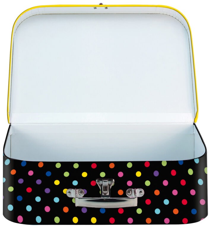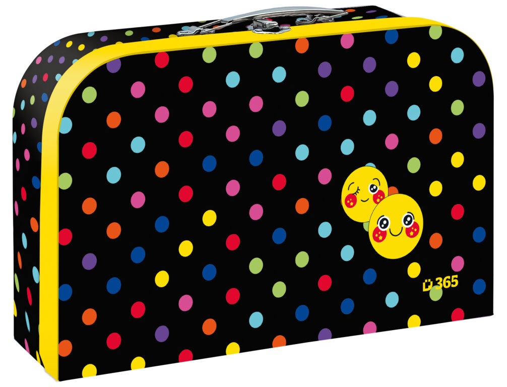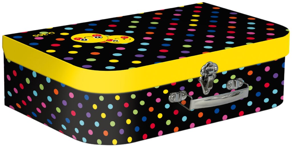 Detský kufrík Stil Smiley je vhodný na uloženie výtvarných potrieb v škole, alebo aj ďalších pomôcok či hračiek doma.Kufrík do školy je veľmi ľahký, vyrobený z kvalitnej lepenky. Vďaka povrchovej úprave je možné prípadnú nečistotu odstrániť vlhkou handričkou. Vonkajšia strana je pokrytá potlačeným papierom s detskými motívmi zladenými so školskými aktovkami a batohmi.