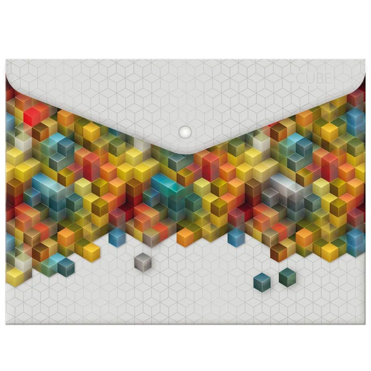 Plastová obálka s cvokom Farebné kocky A4. Spisové dosky s cvokom sú vhodné na dokumenty alebo rôzne listiny. Obálka dokumenty ochráni pred pokrčením a zašpinením.