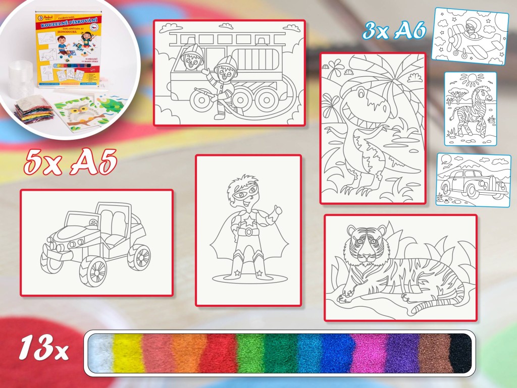 Maľovanie pieskom PRE CHLAPCOV sada stredná