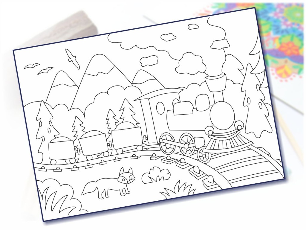 Maľovanie pieskom šablóna A4 vláčik v lese
