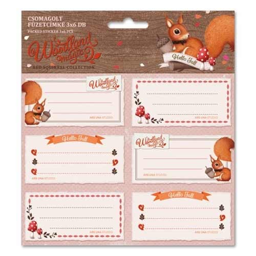 Sada menoviek na zošity s motívom veveričiek, 3 x 6 kusov. Výrobca: Ars una