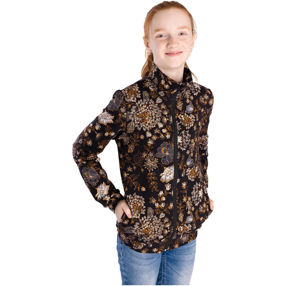 Dievčenská mikina je vyrobená z príjemného bavlneného materiálu a má praktické zapínanie na zips. Ochrana zipsu proti poškriabaniu. Rukávy a pás ukončené pružnou manžetou.