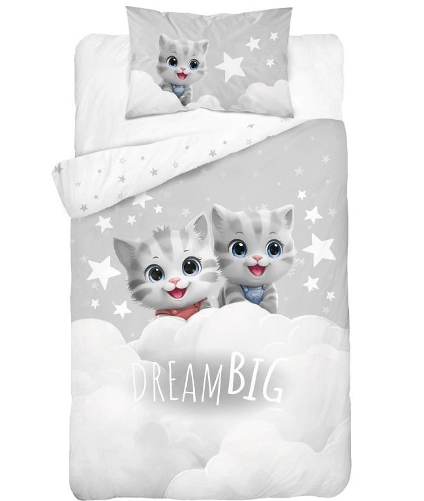 Detské obliečky do postieľky Mačiatka ladené do šedej farby.