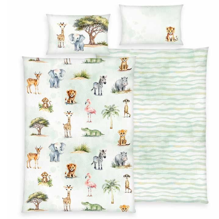 Obliečky pre deti bavlnené je obľúbené pre svoju mäkkosť, vysokú savosť a priedušnosť. Obliečky majú krásny motív Safari. Obsah balenia: 1x vankúš o rozmere 40x60 cm a 1x obliečka na prikrývku o rozmere 100x135 cm.