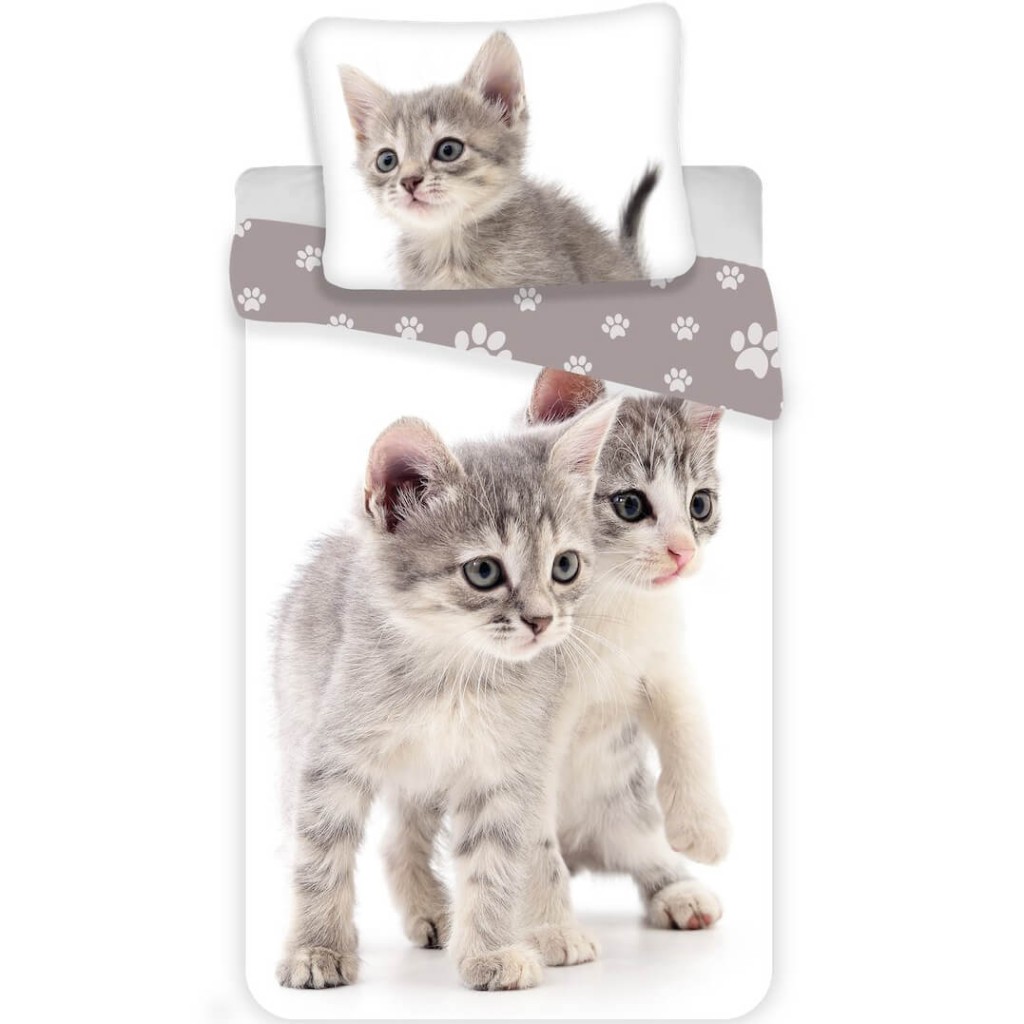 Obojstranné bavlnené obliečky s motívom mačiatok so zipsovým zapínaním. Rozmer návliečky 140x200, vankúša 70x90 cm.