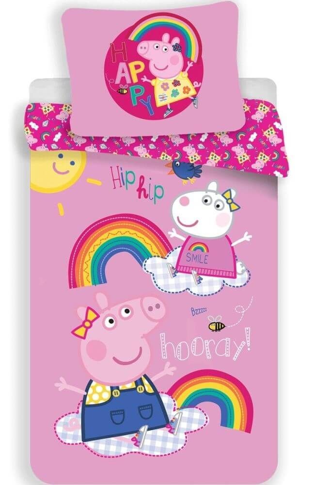 Do ružova ladené detské obliečky s obrázkom populárneho prasiatka Peppy. Obliečky sa zapínajú na zips a ponúkame ho v rozmere 140/200 cm a 70/90 cm.