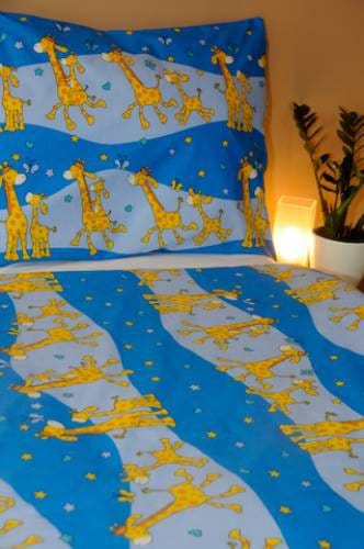 Bavlnené obliečky ladené do modrej farby s detským motívom. Balenie obsahuje 1x obliečky na perinu 140x200 cm a 1x obliečky na vankúš 70x90 cm.