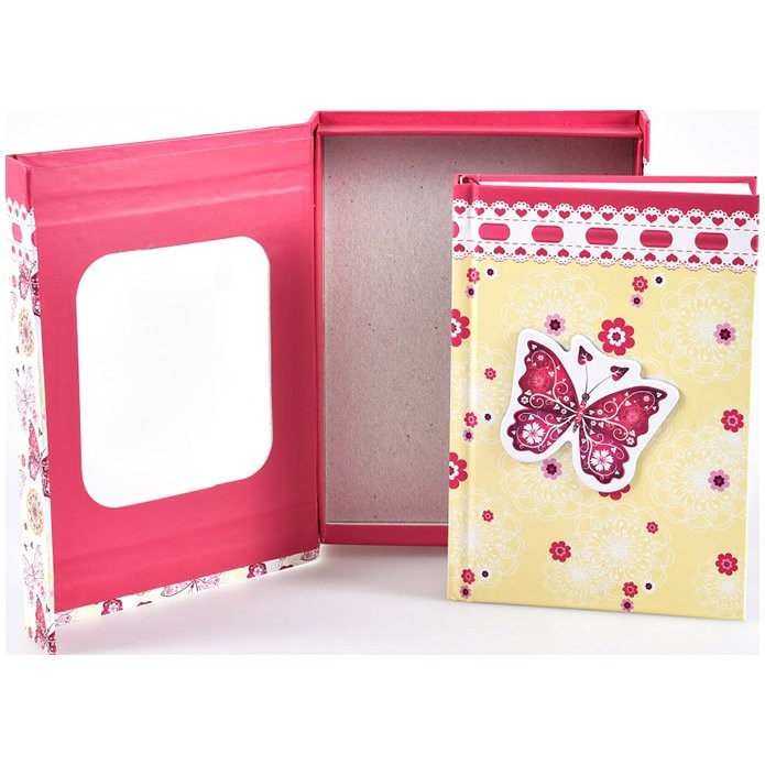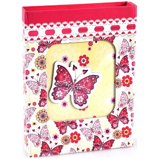 Darčeková magnetická krabička s magnetom s blokom. Blok je linajkový a zdobený aplikácií.