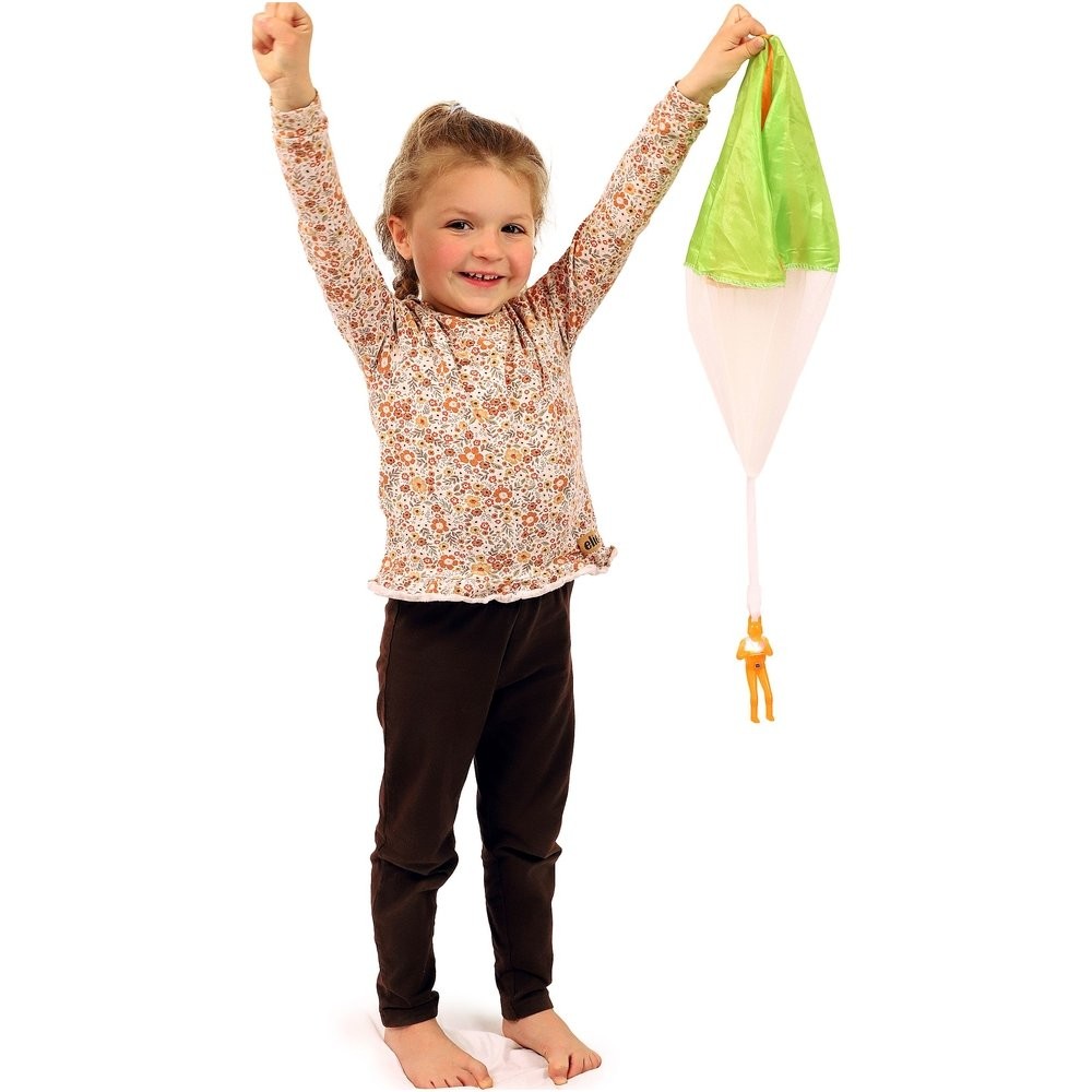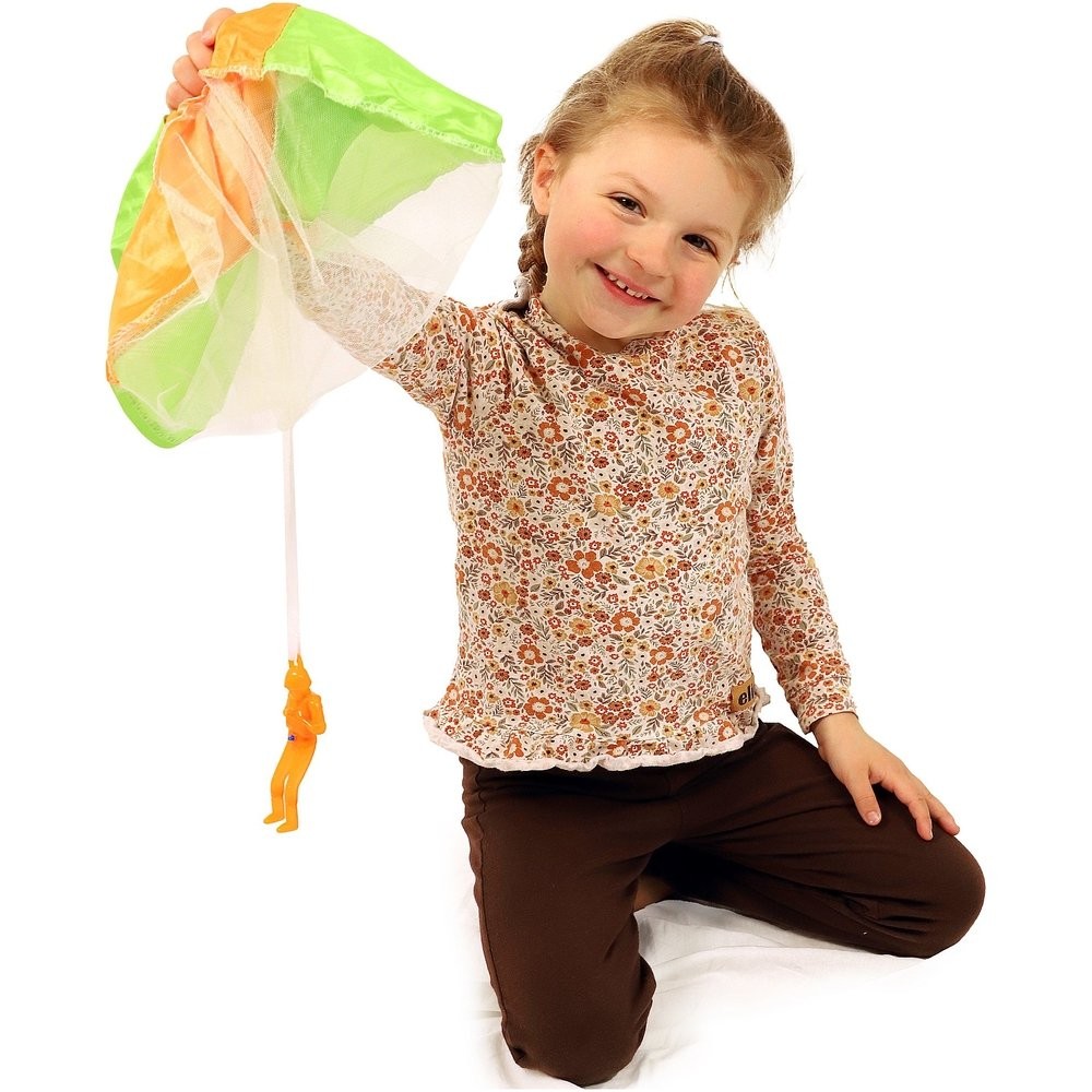 Parašutista figúrka s padákom lietajúca svietiaca látka/plast 12cm na batérie 2 farby