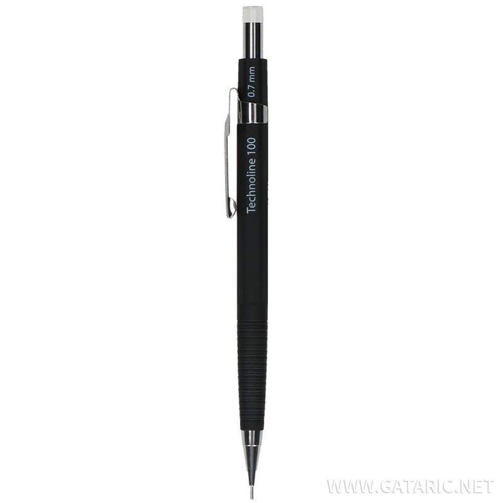 Pentelka (mikrotužka) Spirit Technoline 100 s gumou hore, hladké, elegantné telo, priemer 0,5 mm, tvrdosť HB, černý plast, odolná kovová spona.