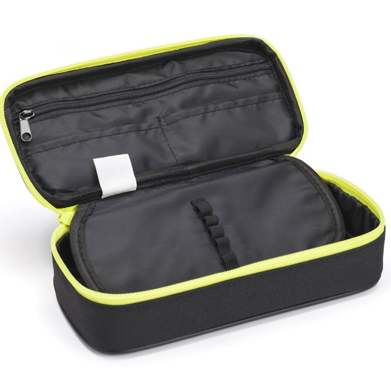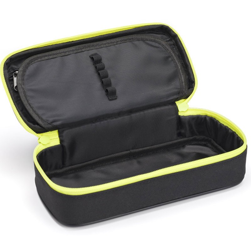 - vnútri puzdra je väčšia komora pre uloženie ceruziek a školských potrieb LI>