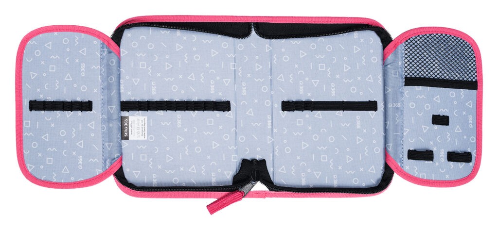Dievčenský jednoposchodový školský peračník Stil Cloud má veľkú kapacitu na umiestnenie písacích potrieb. Presne 24 pevných gumičiek rôznych veľkostí slúži na pohodlné uloženie pasteliek, písacieho pera, ceruziek, pravítka, strúhadla a gumy. Novo sme zväčšili výšku chrbta peračníka, vďaka čomu pojme ešte viac písacích a iných potrieb. Klopy majú na vonkajšej strane priehľadné vrecko na rozvrh či iné malé dokumenty, na vnútornej strane je potom nové sieťované vrecko na uloženie drobností. Farebne zladený dizajn s aktovkou alebo batohom je samozrejmosťou.