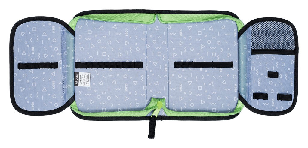 Chlapčenský školský peračník Football značky Stil má veľkú kapacitu na umiestnenie písacích potrieb. Presne 24 pevných gumičiek rôznych veľkostí slúži na pohodlné uloženie pasteliek, písacieho pera, ceruziek, pravítka, strúhadla a gumy. Novo sme zväčšili výšku chrbta peračníka, vďaka čomu pojme ešte viac písacích a iných potrieb. Klopy majú na vonkajšej strane priehľadné vrecko na rozvrh či iné malé dokumenty, na vnútornej strane je potom nové sieťované vrecko na uloženie drobností. Farebne zladený dizajn s aktovkou alebo batohom je samozrejmosťou.