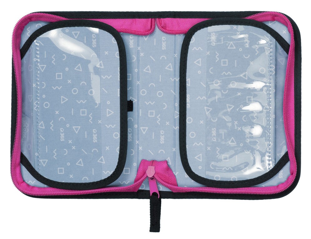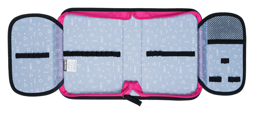 Dievčenský školský peračník Stil Funny má veľkú kapacitu na umiestnenie písacích potrieb. Presne 24 pevných gumičiek rôznych veľkostí slúži na pohodlné uloženie pasteliek, písacieho pera, ceruziek, pravítka, strúhadla a gumy. Novo sme zväčšili výšku chrbta peračníka, vďaka čomu pojme ešte viac písacích a iných potrieb. Klopy majú na vonkajšej strane priehľadné vrecko na rozvrh či iné malé dokumenty, na vnútornej strane je potom nové sieťované vrecko na uloženie drobností. Farebne zladený dizajn s aktovkou alebo batohom je samozrejmosťou.
