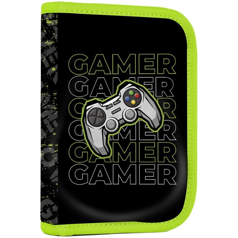 Školský peračník pre chlapca s 2 chlopňami, prázdny obsahuje 25 gumových pútok na uchytenie písacích potrieb. Na vnútorných chlopniach sú priehľadné fólie na rozvrh hodín.