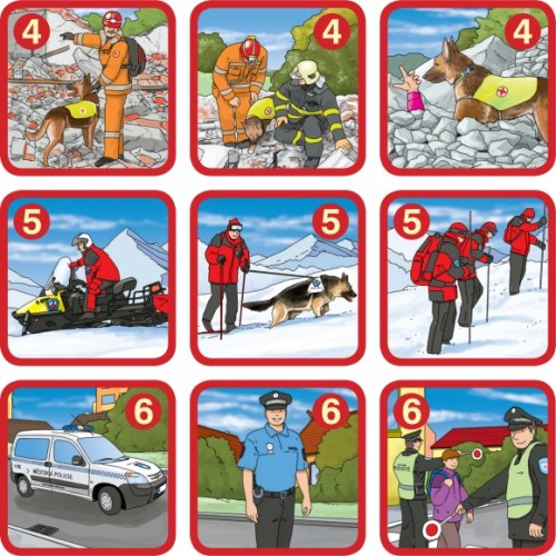 Formou hry sa môžete ľahko naučiť rozpoznať známe plemená psov. Kto pozná psie plemená a rozozná od seba vlčiaka, jazvečíka alebo dalmatínca? A kto vie, ktoré šteňa patrí ku ktorému psovi, a nájde aj jeho pracovný obrázok? Pri hre otáčaj tri kartičky a hľadaj trojice, ktoré patria k sebe! Každá trojica kartičiek je vybavená rovnakým identifikačným znakom. Každá hra obsahuje návod a legendu k danej téme. Hráč, ktorý nájde najviac trojíc, vyhráva. Tieto spoločenské hry sú veľmi obľúbené aj ako didaktické pomôcky. Počet hracích kariet (ks): 36