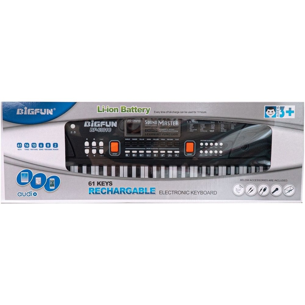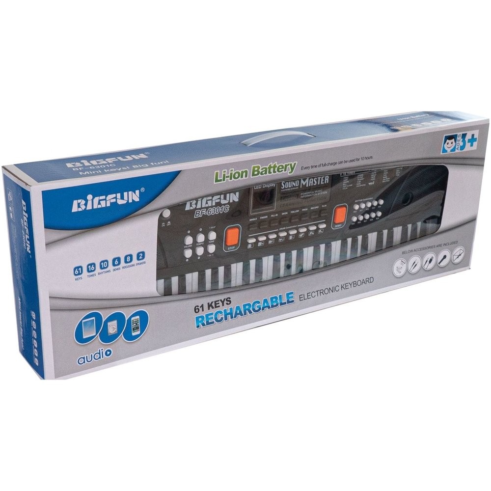 Uži si veľa zábavy s týmto detským Piankom na batérie s mnohými funkciami. Na 61 klávesoch si zahráte veľa skladieb, ktoré môžete ozvláštniť napríklad bicími alebo svojim vlastným spevom. Vhodné od 3 rokov.