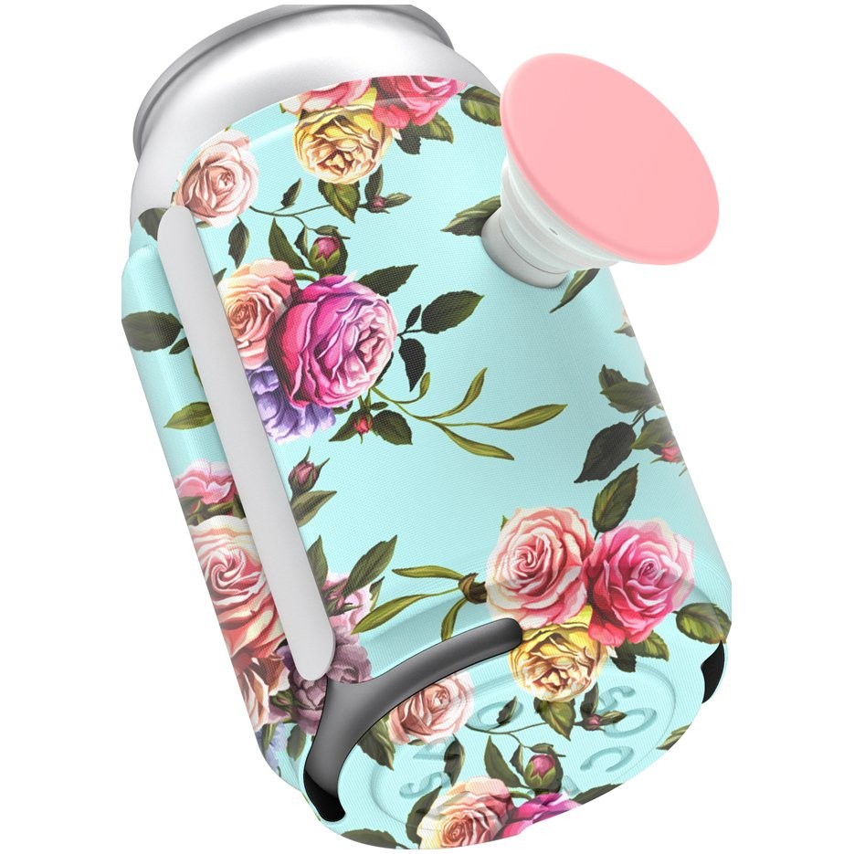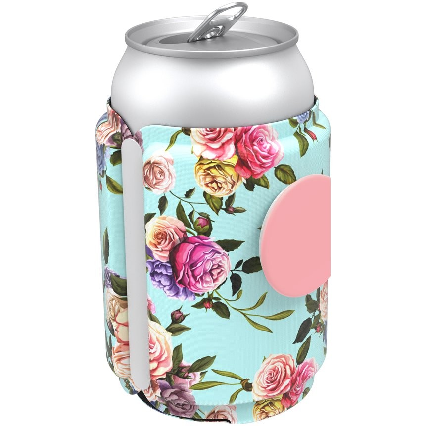 PopSockets PopThirst, držiak/obal na plechovku, s integrovaným PopGrip Gen. 2, tyrkysový s kvetinami