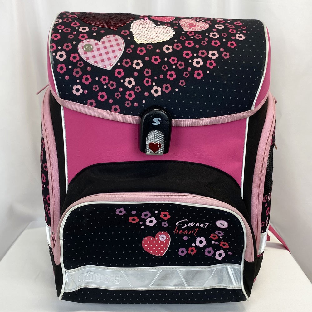 Školská aktovka pre dievčatá s motívom Srdca vhodná pre 1. až 3. triedu základnej školy.