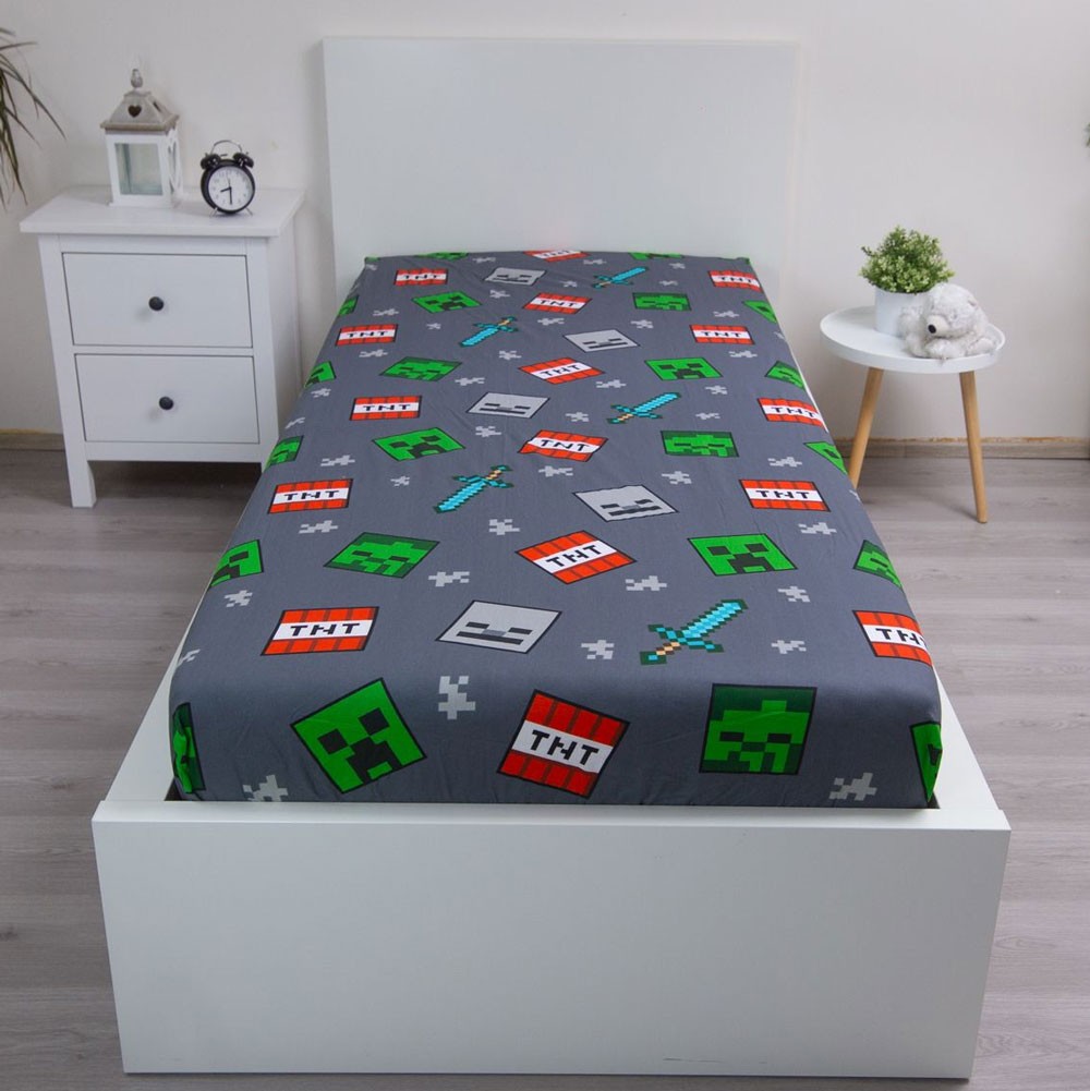 Detská plachta na posteľ s motívom Minecraft. Prestieradlo má praktickú gumu v rohoch, ktorá zabráni zhrňovaniu a zaistí, aby prestieradlo dobre držalo na matraci. Rozmer prestieradla je 90x200x25 cm.