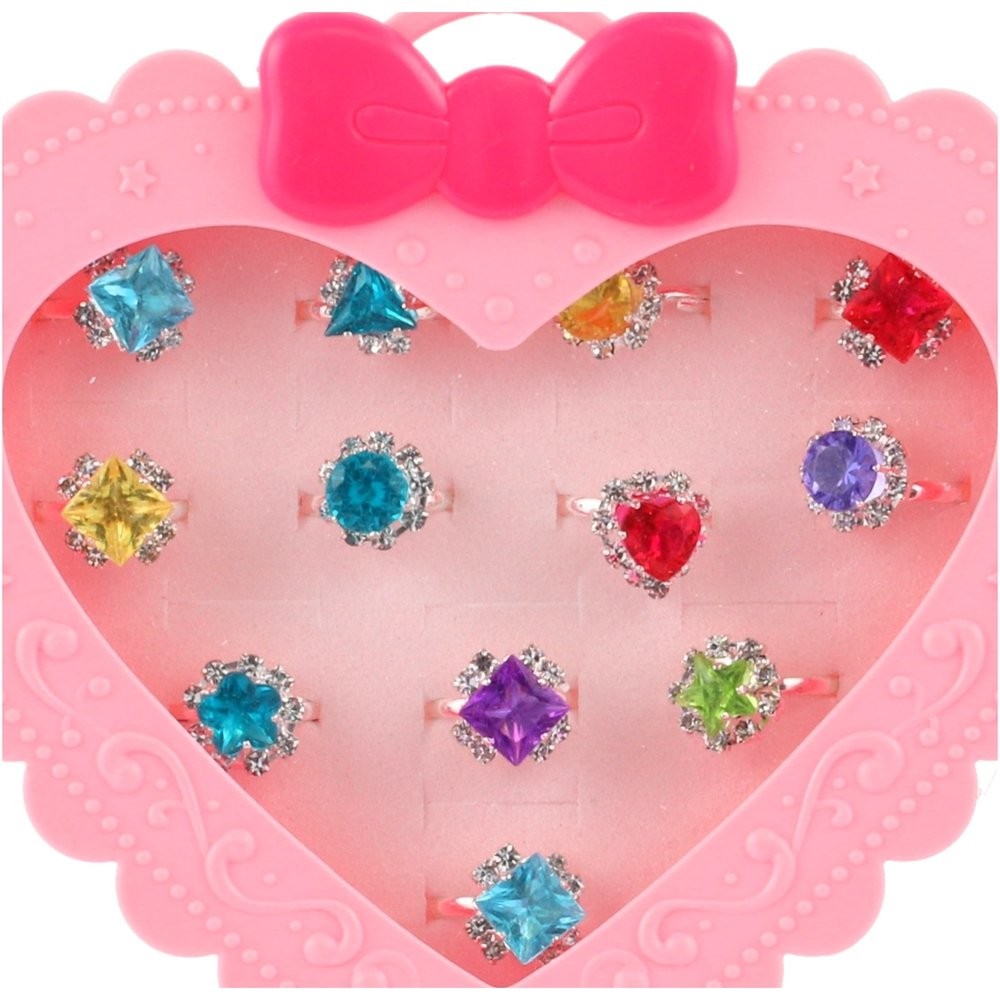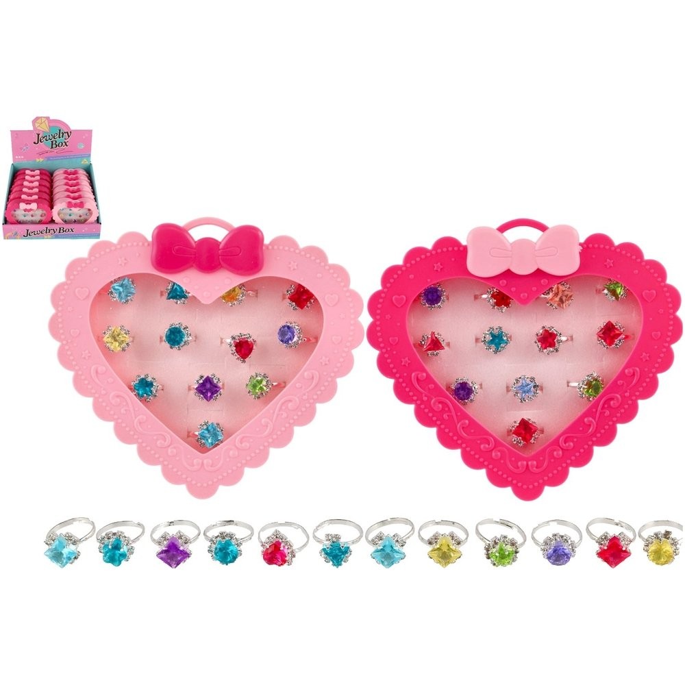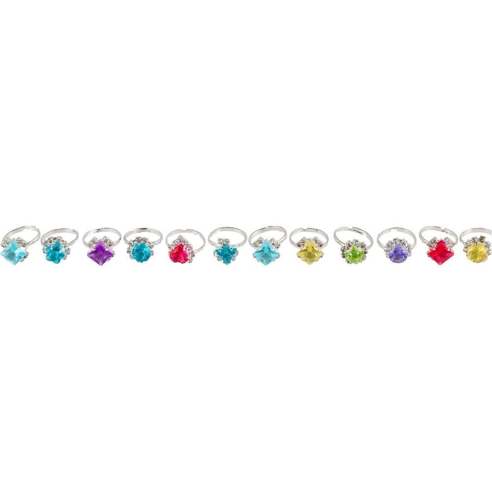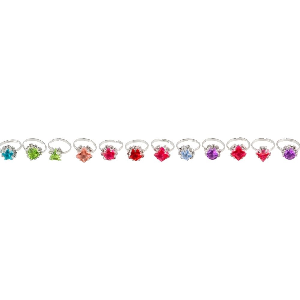 Prstienok/Prstienky s kamienkom kov/plast 12ks nast. veľkosť 2 farby
