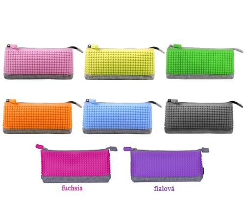 Farebné peračníky s patentovanou silikonovou doskou o veľkosti 33x10 bodov. Máte teda 330 pozícií pre svoje nápady. Peračník je vyrobený z trendovej vlnenej plsti. Zapínanie na zips. Vnútri je dostatok miesta nielen na perá a farbičky, ale aj na iné potrebné maličkosti. Ku každému peračníku dostanete zdarma 60 malých pixelov.