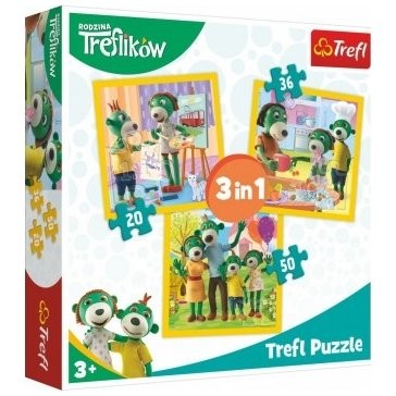 Detské puzzle Trefl s tromi obrázkami s motívom animovaného seriálu Trefíci. Progresívny puzzle s rôznou obtiažnosťou - 3 puzzle s 20, 36 a 50 dieliky postupne vedú k zdokonaľovaniu dieťaťa pri skladaní a zvyšovaní obtiažnosti.