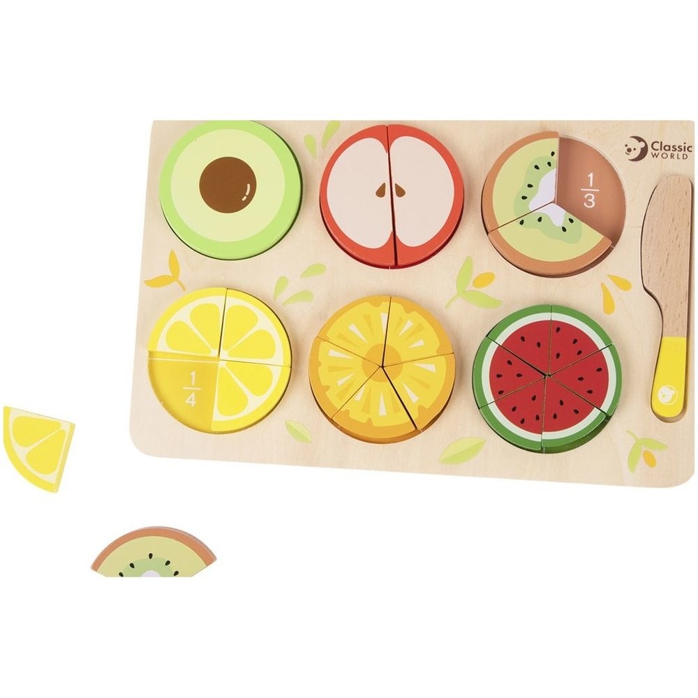 Puzzle doskové drevené krájacie ovocie-zlomky