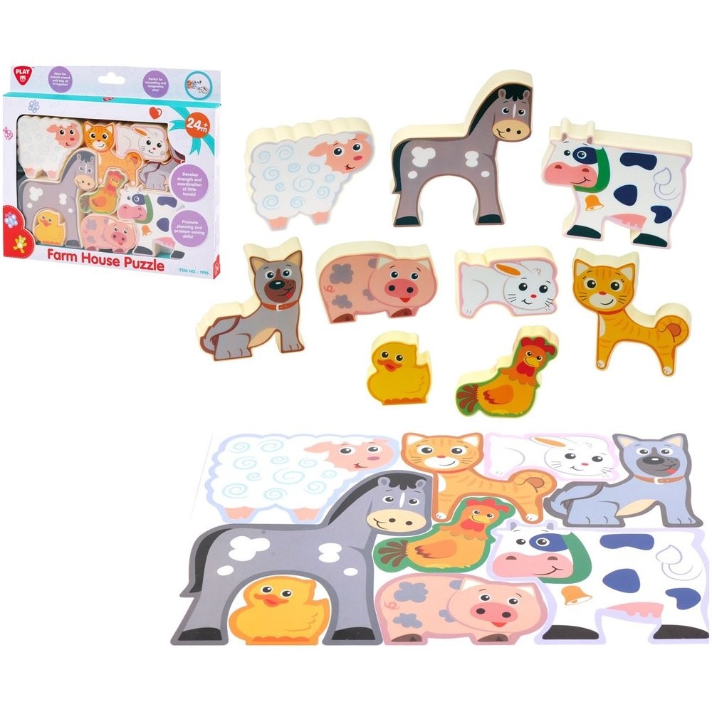 Presúvajte zvieratká tak, aby do seba všetky pekne zapadli. Deťom pomôže predloha. S dielikmi zvieratiek z farmy (9 ks) sa deti môžu hrať aj samostatne.
