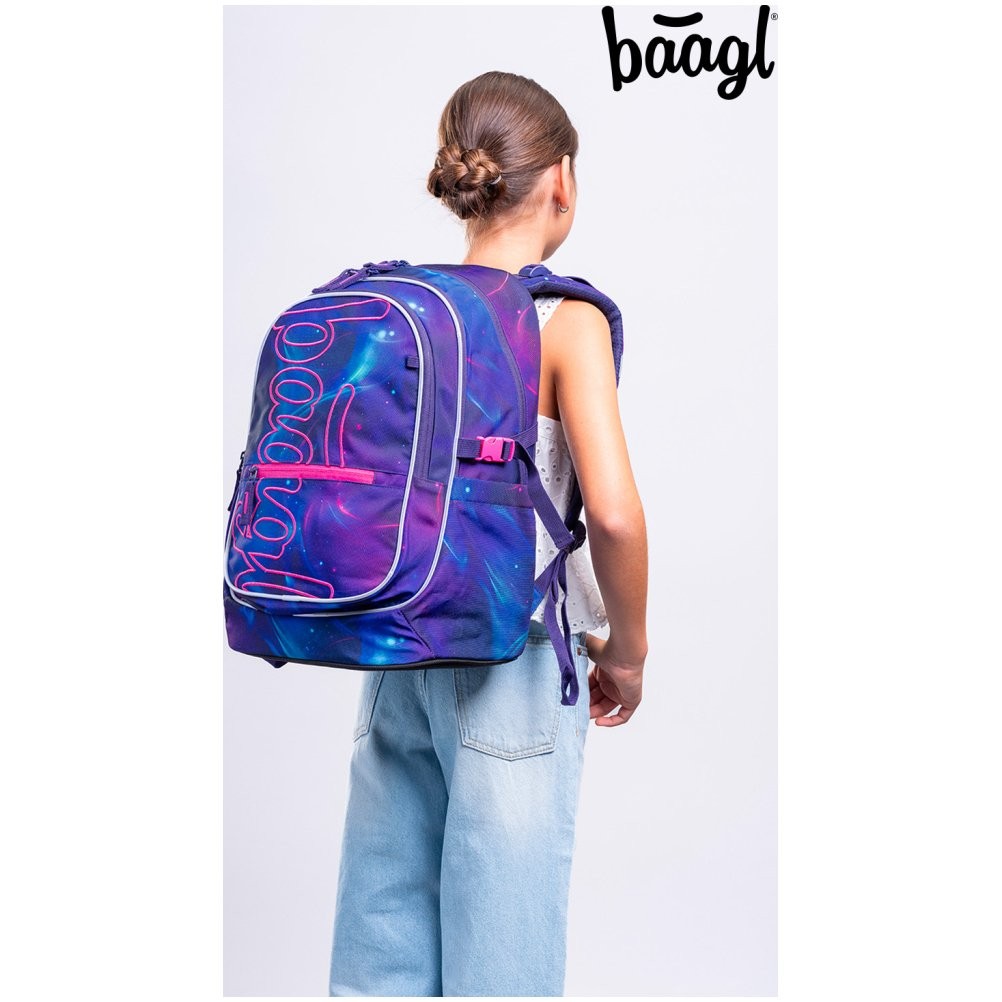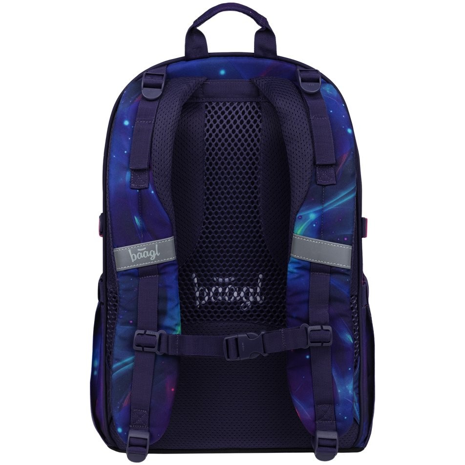 Školský batoh pre 2. stupeň Baagl Core Nova má anatomicky tvarovaný chrbát s odvetrávaním a polstrované vrecko na notebook.