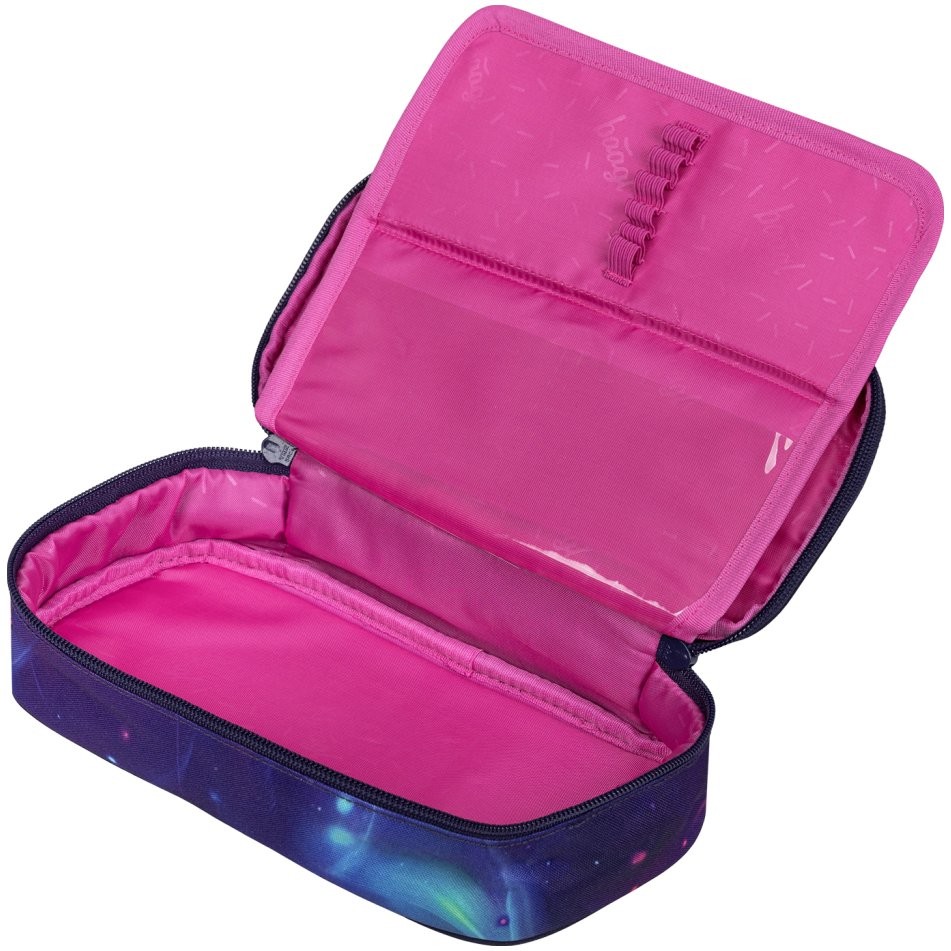 Školský peračník na zips s priestrannou hlavnou komorou a dvojitou výklopnou chlopňou ponúka dostatok priestoru na písacie potreby aj drobnosti.