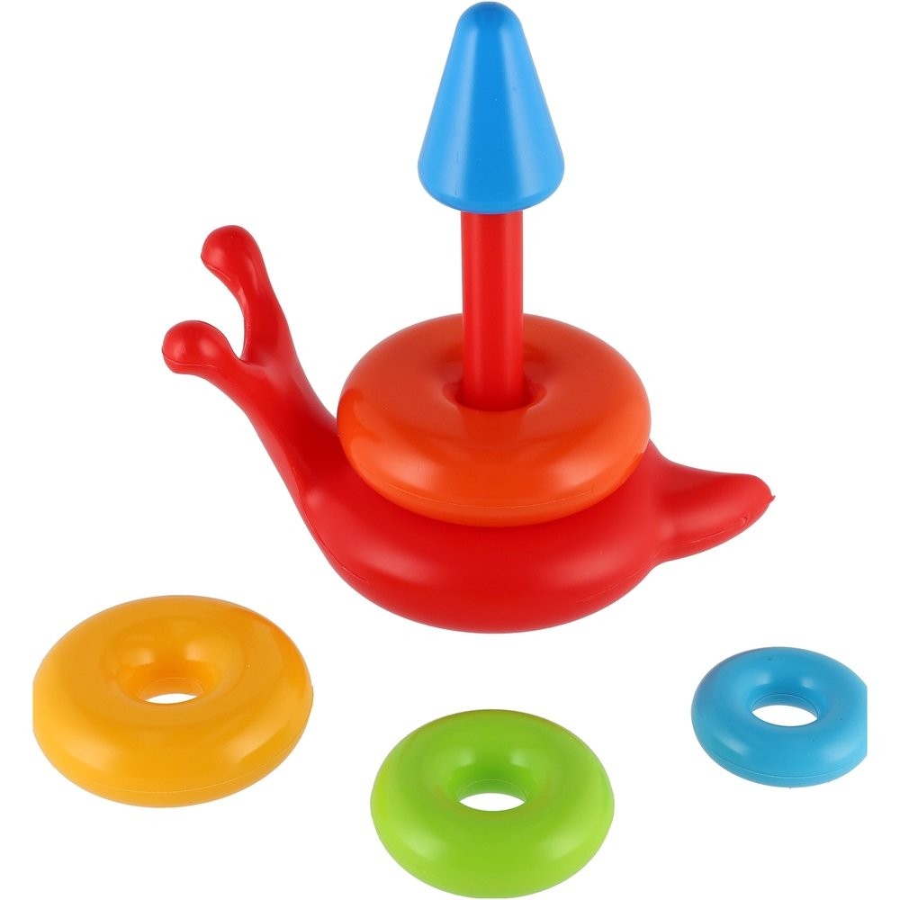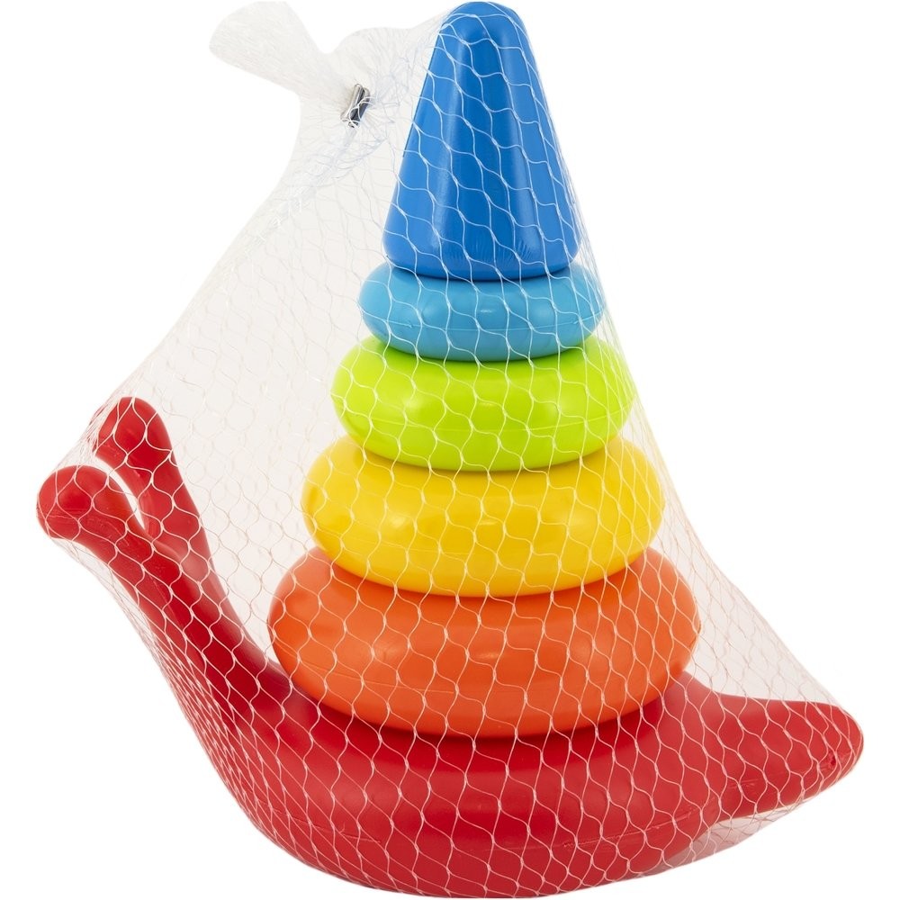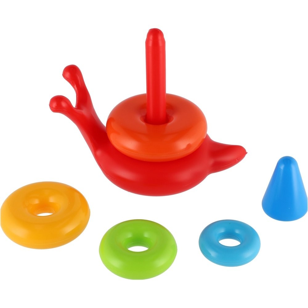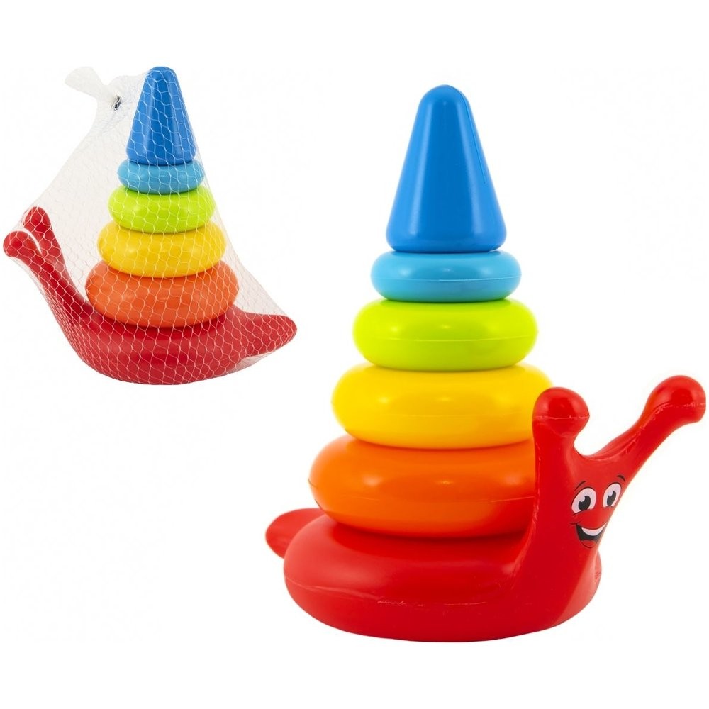 Táto pestrofarebná skladacia pyramída vo farbách dúhy je perfektnou hračkou pre tie najmenšie deti. Rôznofarebné krúžky sa na seba skladajú podľa veľkosti. Motív slimáka. Hračky pre batoľatá rozvíjajú vizuálnu stimuláciu, motorické zručnosti a koordináciu rúk. Vhodné pre deti od 12 mesiacov.