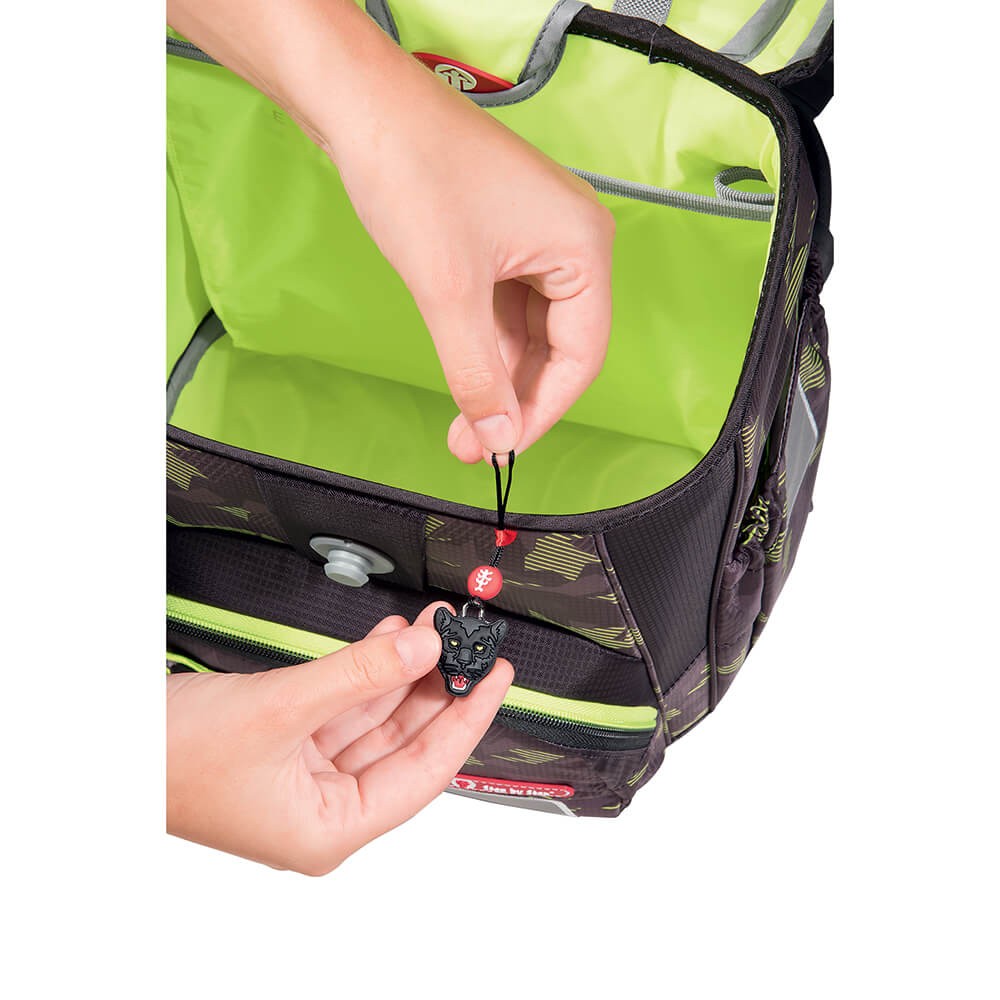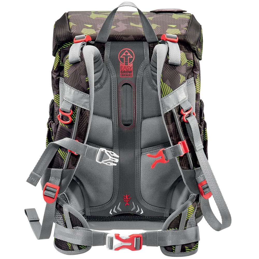 - možnosť plynulého výškového nastavenia ramenných popruhov pomocou otočného mechanizmu vnútri aktovky, zaisťuje presné nastavenie ramenných popruhov priamo na chrbte dieťaťa