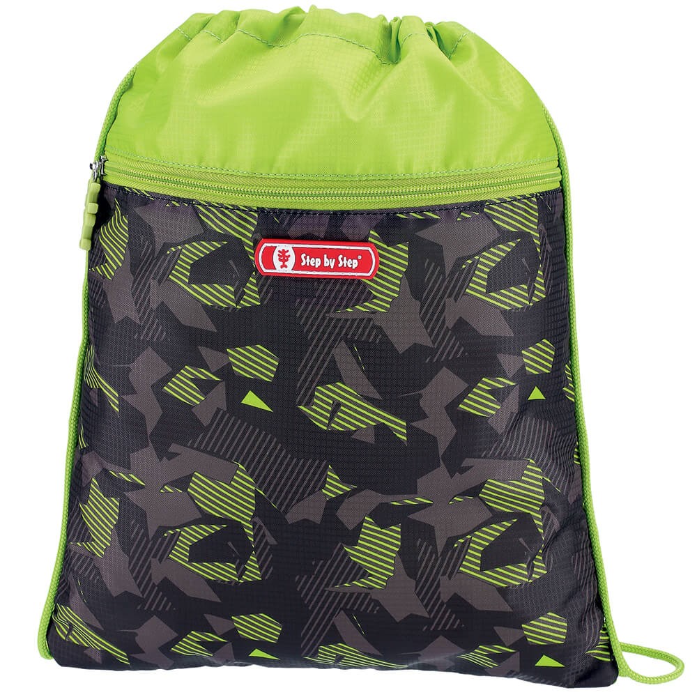 Vrecúško na cvičebný úbor alebo prezúvky so zatváraním utiahnutím šnúrky. Na prednom vrecku ďalšie zipsové vrecko.