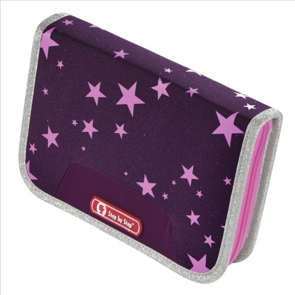 Jednokomorový školský peračník s jednou klopou naplnený značkovými ceruzkami (nemecká zn. Eberhard Faber). Výbavu tvorí: 7 silných trojhranných pasteliek s nelámavými tuhami, 12 tenkých trojhranných pasteliek, ceruzka, pravítko rovné, pravítko trojuholníkové, guma, dvojité strúhatko, rozvrh hodín, zapínanie na zips