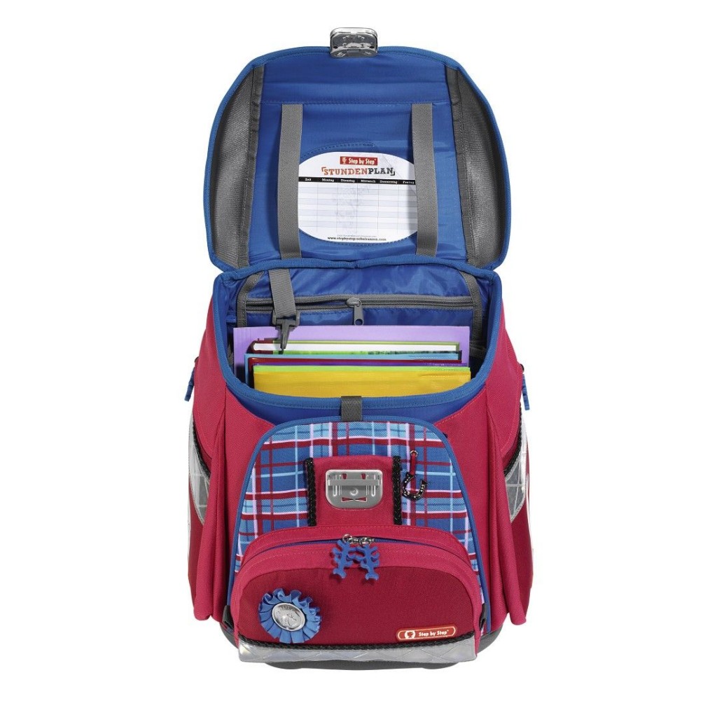 - zadná priehradka vnútri aktovky je určená pre ťažšie predmety (napr. učebnice), zaistí sa tak rovnomerné rozloženie hmotnosti