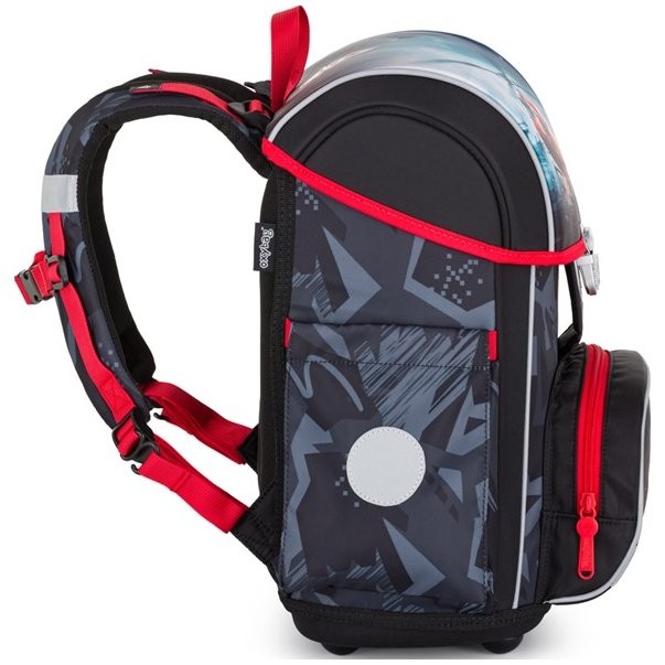 Školská aktovka z rady Premium je anatomicky tvarovaná a zaisťuje tak správne usadenie na chrbte. Vystužený chrbát a vnútorná výstuha udržujú stály tvar batohu. Polstrovanie je z príjemného priedušného materiálu, široké mäkčené popruhy sú navrhnuté tak, aby dokonale priľnuli a rovnomerne zaťažili ramená dieťaťa. Aktovka sa skladá z jednej priestrannej komory, kam sa pohodlne zmestia všetky školské pomôcky pre deti v 1. av 2. triede. Dno školské tašky je z pevného materiálu, chráni tým obsah pred prevrhnutím a vysypaním. Zapínanie je na bezpečnostnú kovovú pracku s reflexnou odrazkou. Predné vrecko je určené na desiatu, nechýba rad reflexných prvkov, vďaka ktorým je aktovka viditeľnejšia.