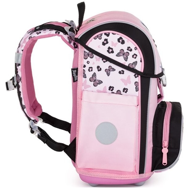 Praktická aktovka pre prvákov Panda z radu Premium je anatomicky tvarovaná a zaisťuje tak správne usadenie na chrbte. Vystužený chrbát a vnútorná výstuha udržujú stály tvar batohu. Polstrovanie je z príjemného priedušného materiálu, široké mäkčené popruhy sú navrhnuté tak, aby dokonale priľnuli a rovnomerne zaťažili ramená dieťaťa. Aktovka sa skladá z jednej priestrannej komory, kam sa pohodlne zmestia všetky školské pomôcky pre deti v 1. av 2. triede. Dno školské tašky je z pevného materiálu, chráni tým obsah pred prevrhnutím a vysypaním. Zapínanie je na bezpečnostnú kovovú pracku s reflexnou odrazkou. Predné vrecko je určené na desiatu, nechýba rad reflexných prvkov, vďaka ktorým je aktovka viditeľnejšia.