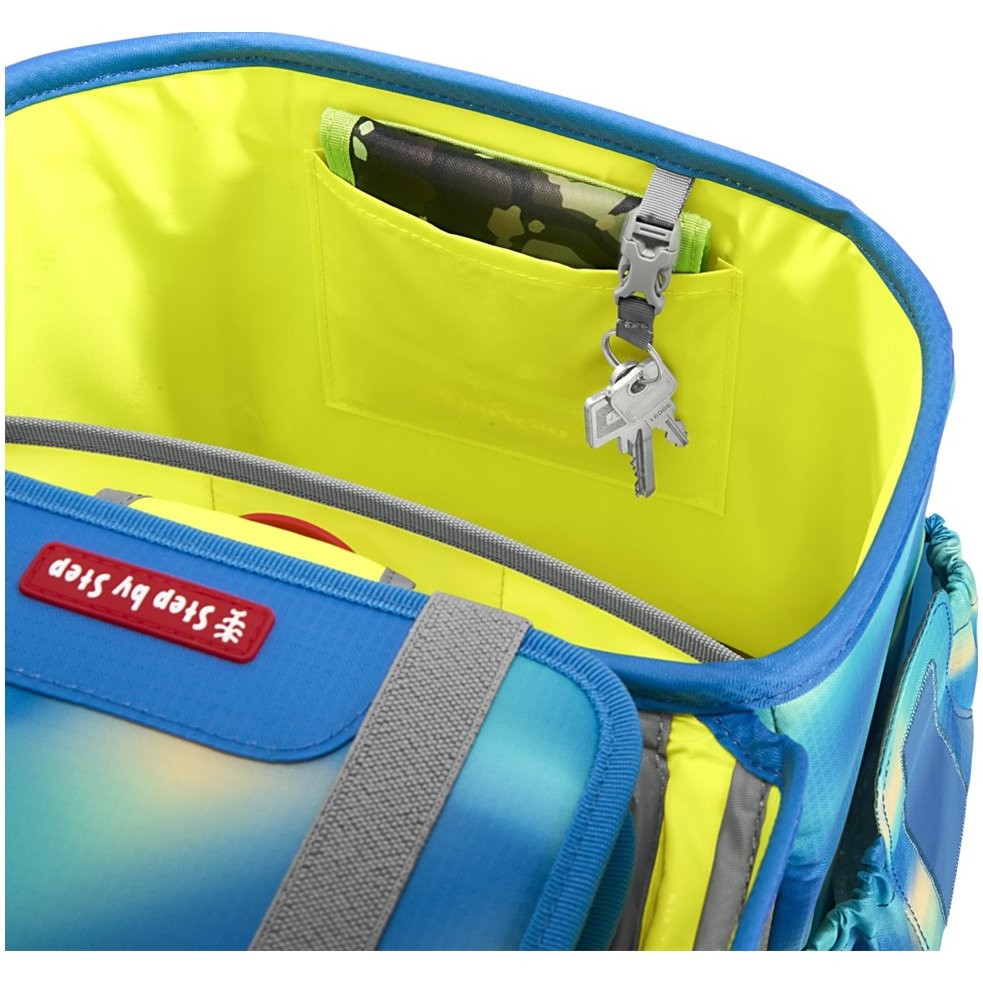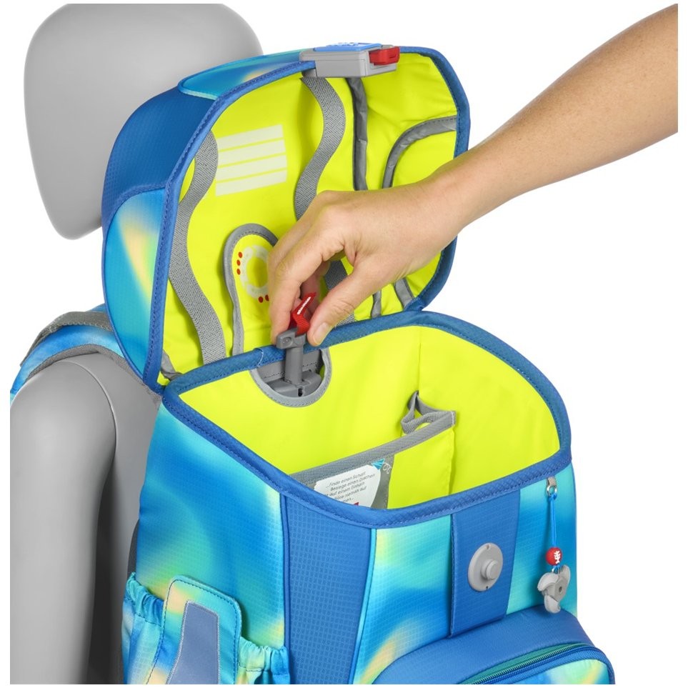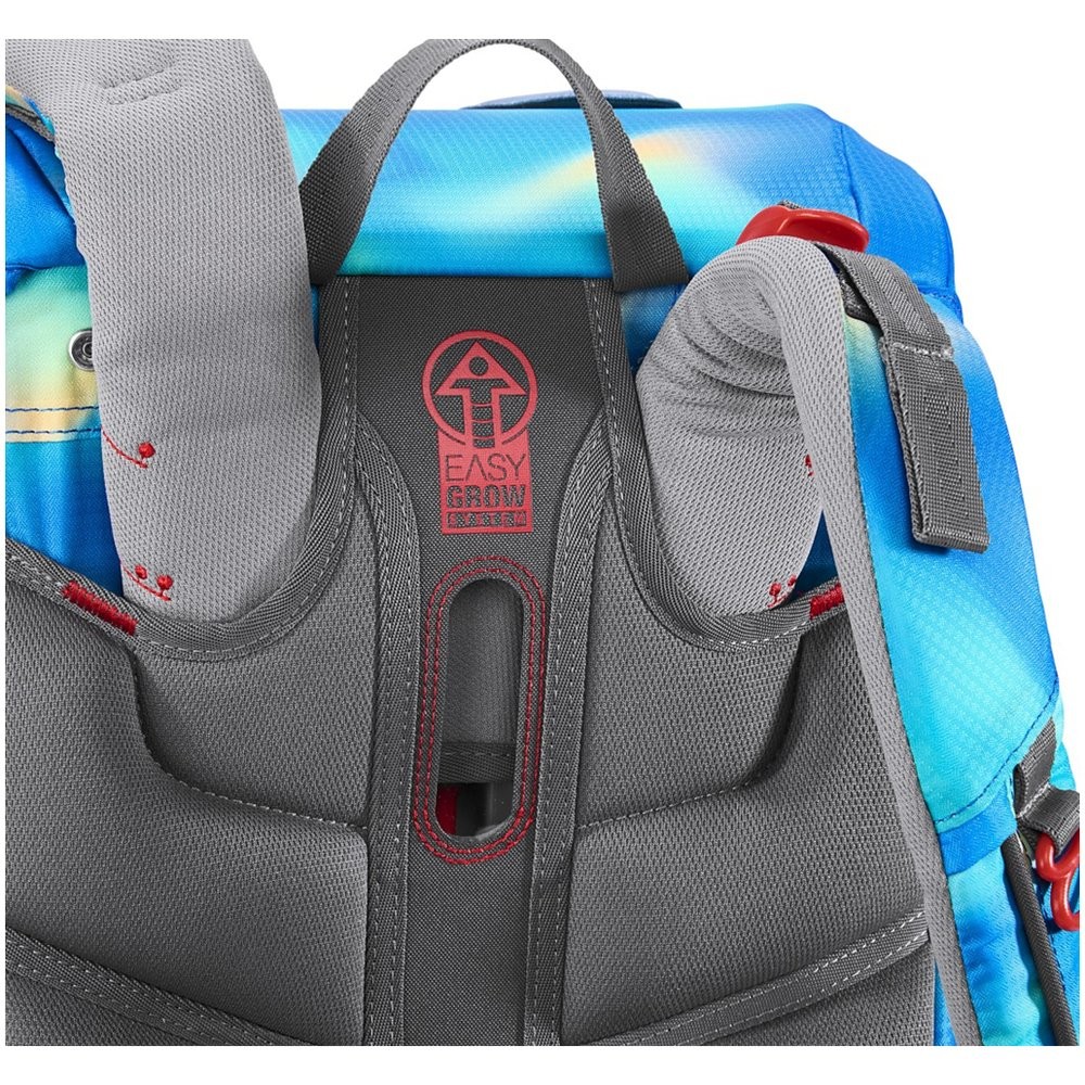 Odľahčený, odolný a vodeodolný materiál, prehľadná jednokomorová aktovka, ľahká konštrukcia zo sklolaminátu drží stabilný tvar aktovky. Ergonomicky tvarovaný chrbát s mäkkým priedušným polstrovaním. Polstrované, nastaviteľné popruhy na ramená v tvare S. Háčiky na popruhu pre zavesenie koncov popruhu, doťahovacie pásky na ramennom popruhu, slúžia k dokonalému priľnutiu aktovky k chrbtu dieťaťa.