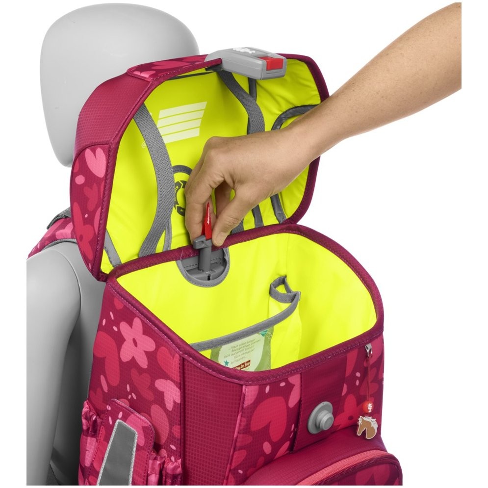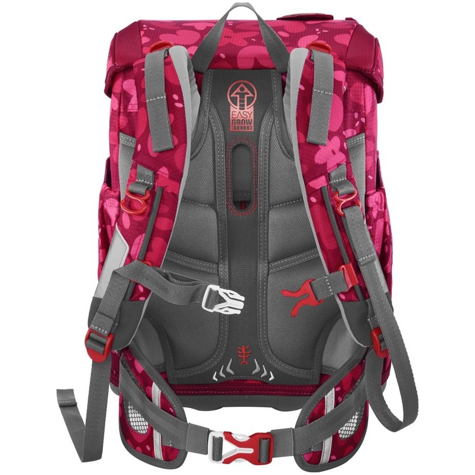 Odľahčený, odolný a vodeodolný materiál, prehľadná jednokomorová aktovka, ľahká konštrukcia zo sklolaminátu drží stabilný tvar aktovky. Ergonomicky tvarovaný chrbát s mäkkým priedušným polstrovaním. Polstrované, nastaviteľné popruhy na ramená v tvare S. Háčiky na popruhu pre zavesenie koncov popruhu, doťahovacie pásky na ramennom popruhu, slúžia k dokonalému priľnutiu aktovky k chrbtu dieťaťa.
