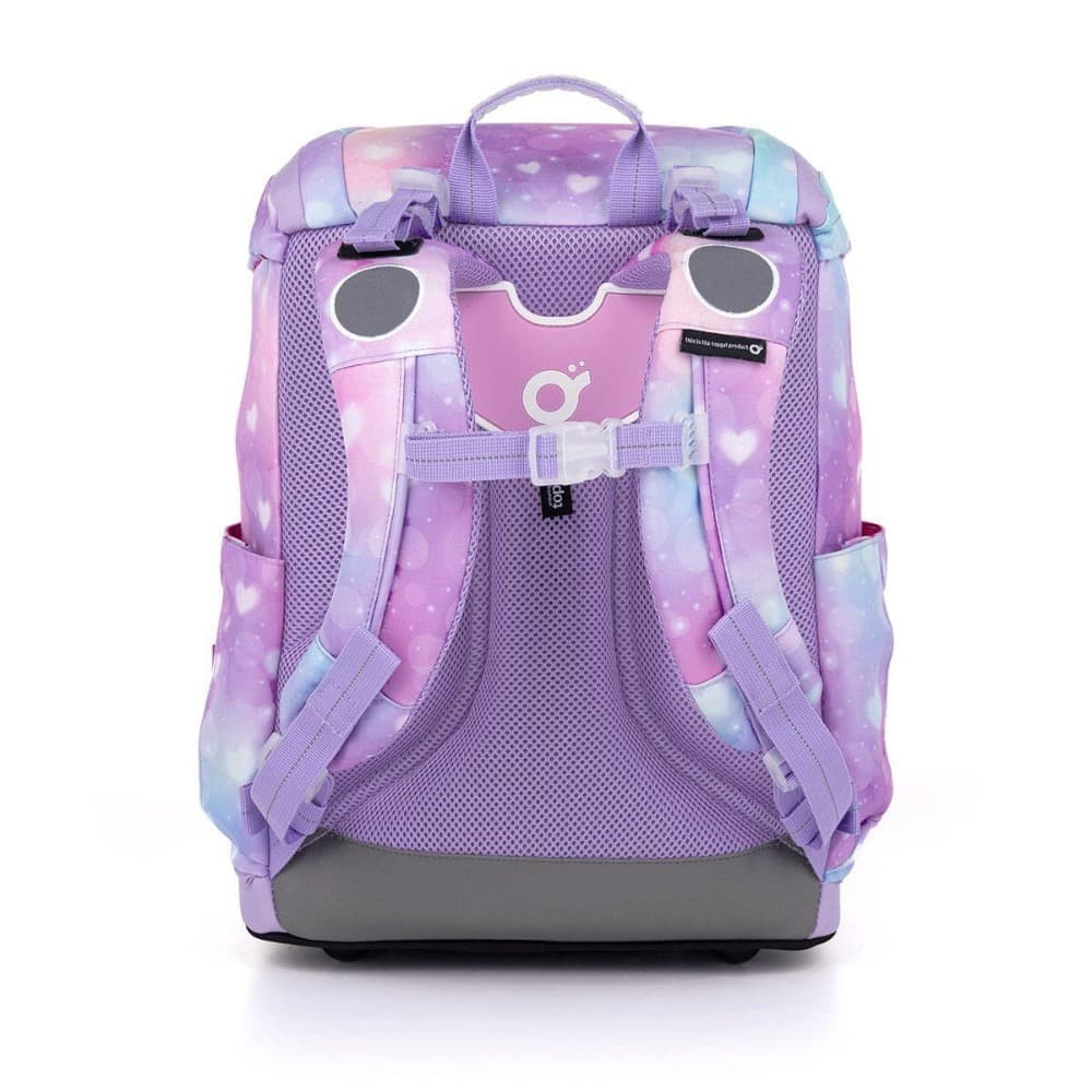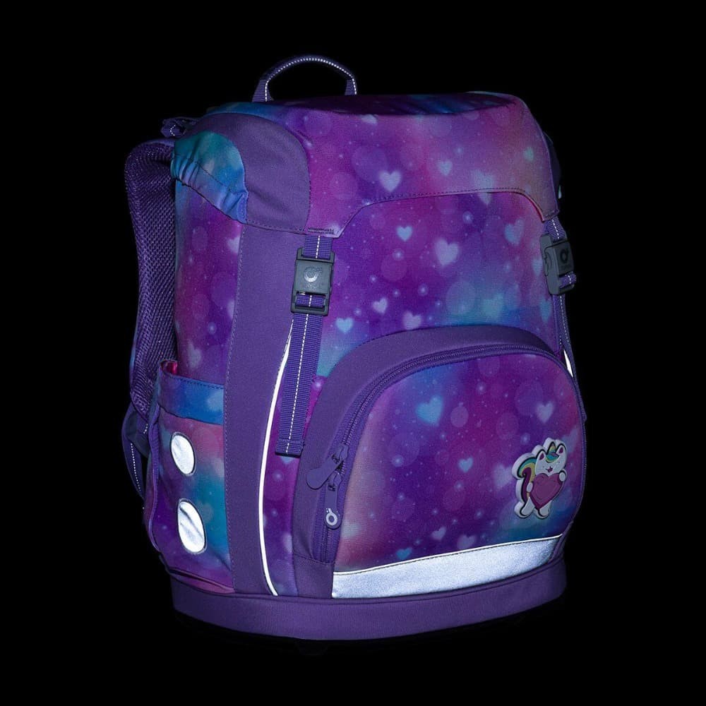 Hlavná charakteristika: - váha aktovky len mierne presahuje 1 kg - pevná anatomicky tvarovaná chrbtová časť s plastovou výstužou - jedna komora s priehradkou a malým predným vreckom - výškovo nastaviteľný hrudný pás - nastaviteľné ramenné popruhy - pútka pre bedrový pás - konce ramenných popruhov sú vybavené magnetmi (pre ľahšie uchytenie vlajúcich koncov) - reflexné prvky - na prednej strane a bokoch batohu, na ramenných popruhoch - PU záter proti dažďu - pevné dno z materiálu TOPDURA opatrené nožičkami - batoh testovaný v ITC Zlín - odnímateľná karabínka na kľúče - magnetické zámky