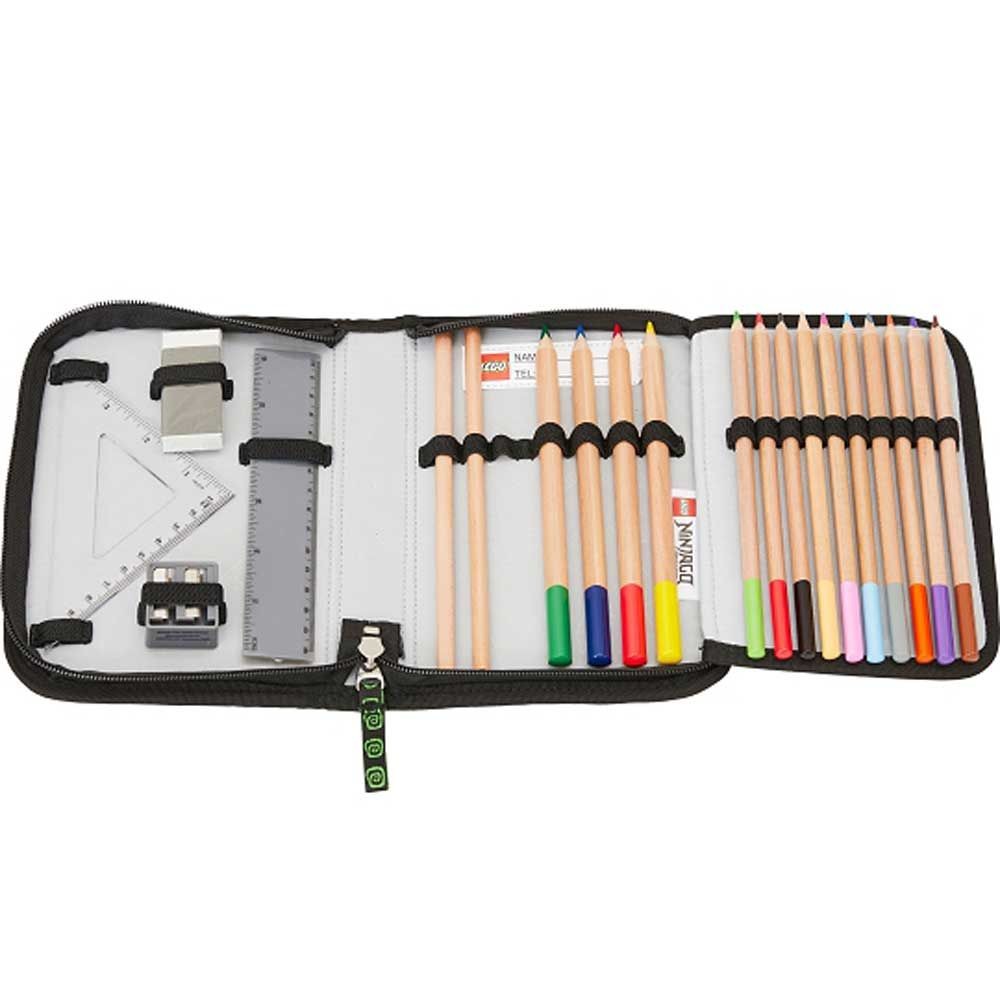 LEGO peračník s náplňou obsahuje všetky potrebné písacie potreby do školy. Náplň tvorí: 2 grafitové ceruzky, 10 farebných pasteliek, 4 široké farebné pastelky, guma na gumovanie, strúhatko, rovné a trojuholníkové pravítko. Peračník obsahuje rozvrh hodín v priehľadnom vrecku a všitú vnútornú menovku. Je vyrobené z odolného materiálu bez použitia PVC. Ideálny pre prvý ročník základnej školy.