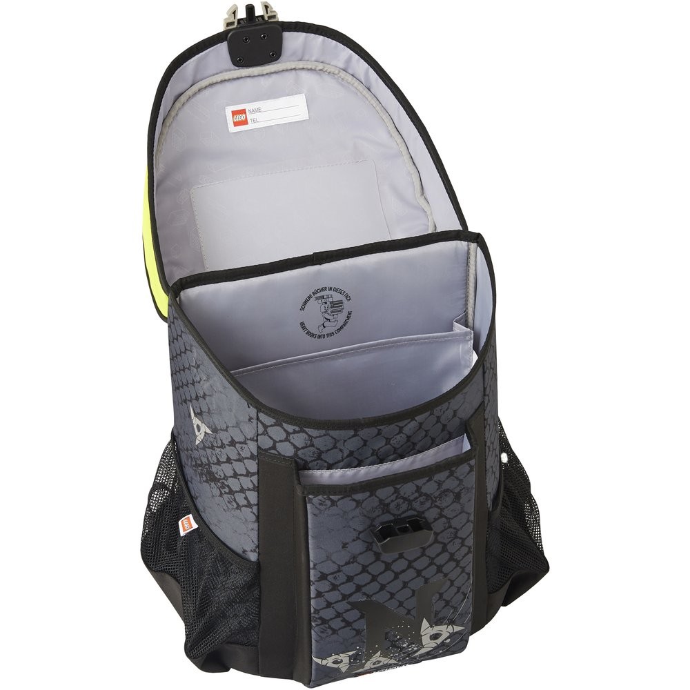 Ľahká a priestranná školská aktovka s licenčným motívom LEGO® Ninjago vhodná pre prváčikov až štvrtú triedu základnej školy. Taška ponúka dostatok priestoru pre všetky potrebné knihy a zošity, fľašu i desiatový box.