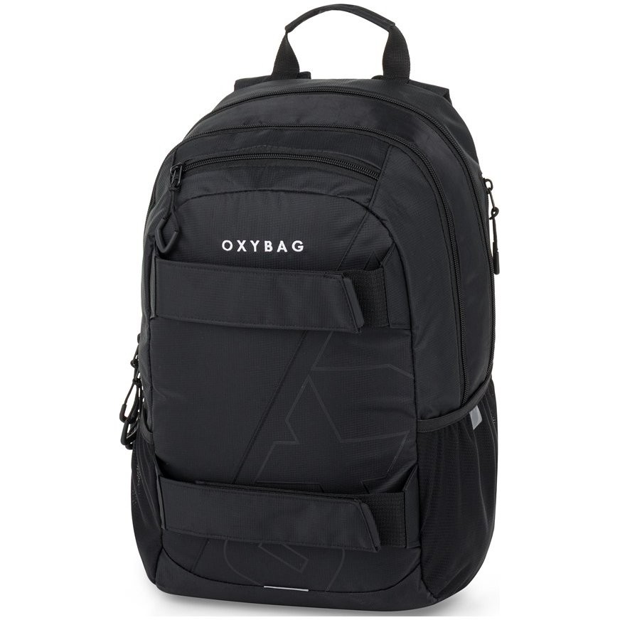Chlapčenský výhodný set batohu a študentské etue. Študentský aj voľnočasový školský batoh rady OXY SPORT vyniká ergonomicky tvarovaným chrbtom, nastaviteľnými polstrovanými ramennými popruhmi a hrudným popruhom, vďaka ktorým sa pohodlne nosí. Študentský batoh sa skladá z dvoch hlavných komôr a jedného menšieho predného vrecka s pevnými zipsami a praktickými pútkami. Vnútri batohu je vystužená vrecko na notebook, karabína na kľúče, menšie vrecko na drobnosti a skryté vrecko na chrbte. Nechýba tiež bočné vrecko na fľašu na pitie a rad reflexných prvkov, vďaka ktorým je batoh lepšie viditeľný. Batoh je ideálny ako pre školákov na druhom stupni tak aj pre voľnočasové aktivity študentov a dospelých.