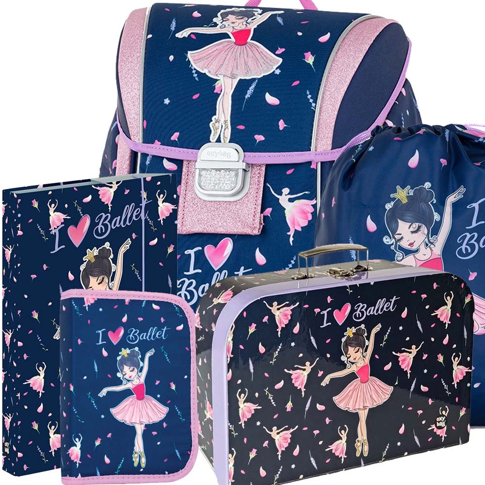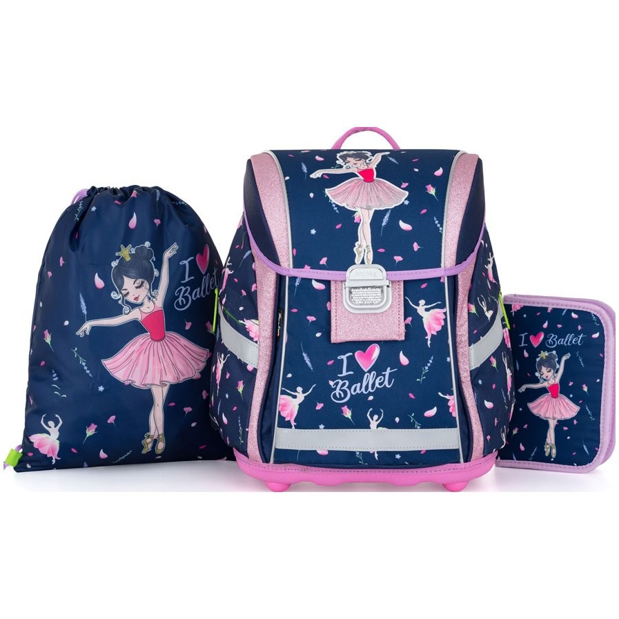 Školská taška s motivom baletky je pre štandardne vysoké prváčiky. Hlavnou výhodou radu Light je jej nízka hmotnosť. Školský set sa skladá z tašky, peračníka, vrecka na cvičky, kufríka a boxu na zošity A4.