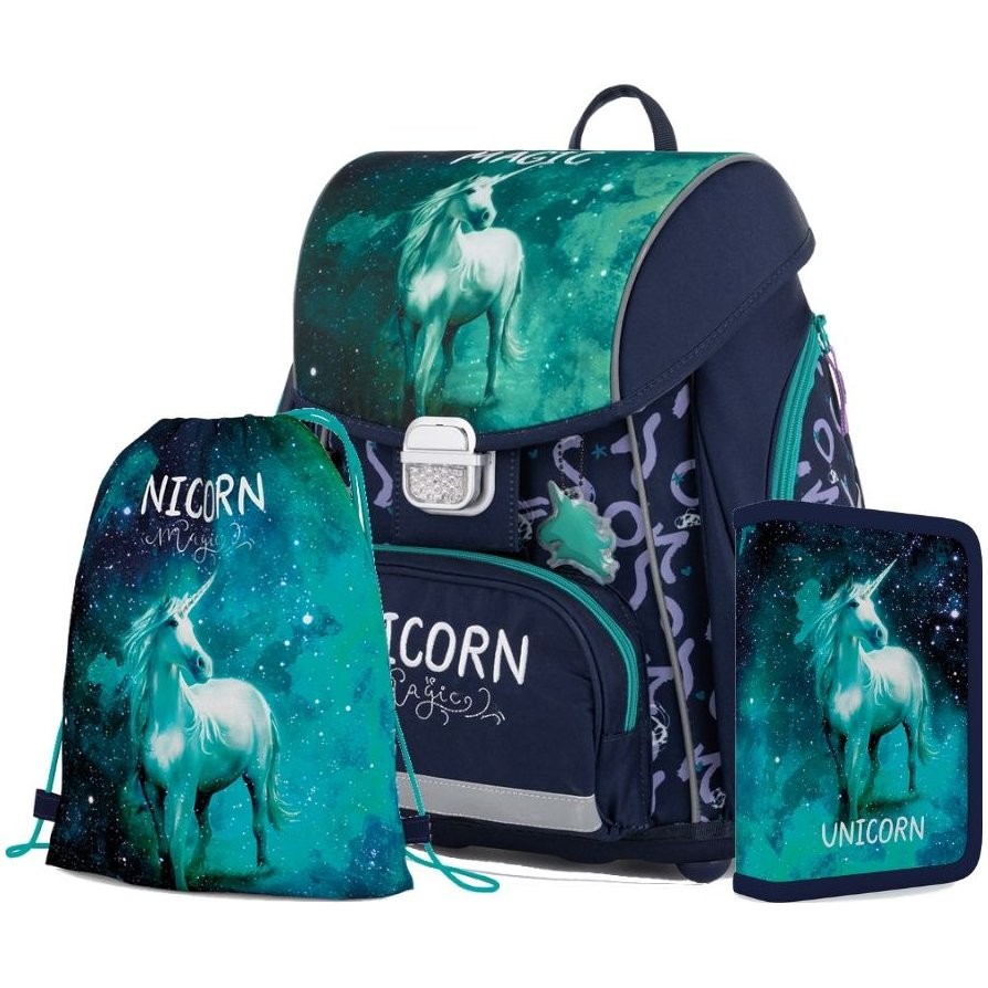 Školská taška Oxybag PREMIUM Unicorn 1 3dielny set a box A4 číry zdarma